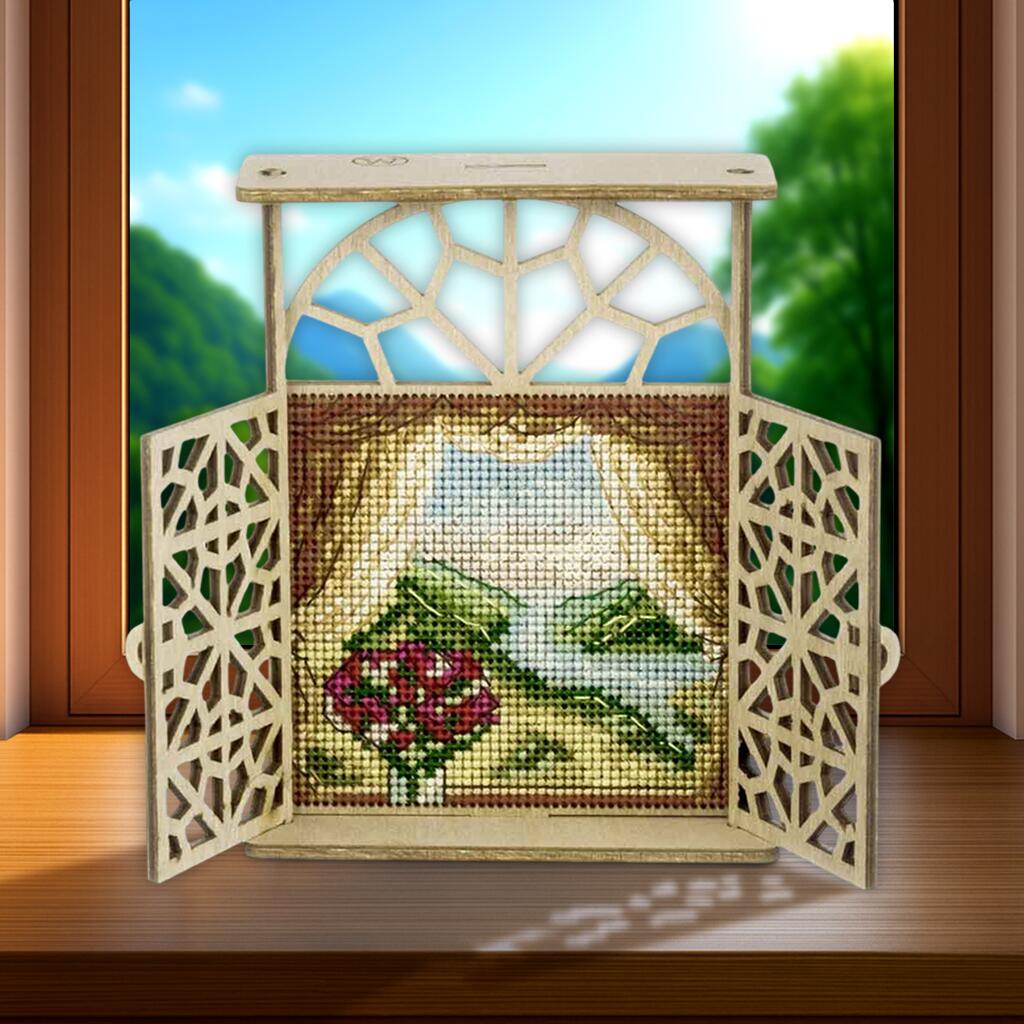FLW-079 Wonderland Сrafts Набір для вишивки рахунковим хрестиком по дереву - Іграшка Тиша за фіранками 9x12,5x3,5 см