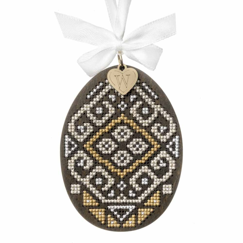 Набір для вишивки хрестиком по дерев’яній основі від української компанії Wonderland Crafts дозволяє створити декоративний виріб у формі писанки. Перфорована фанерна заготовка забезпечує зручний процес вишивки та допомагає отримати чіткий і акуратний результат.