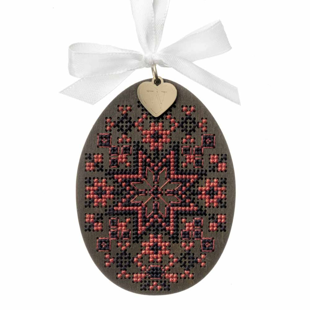 Набір для вишивки хрестиком по дерев’яній основі від української компанії Wonderland Crafts дозволяє створити декоративний виріб у формі писанки. Перфорована фанерна заготовка забезпечує зручний процес вишивки та допомагає отримати чіткий і акуратний результат.