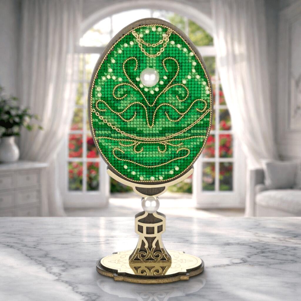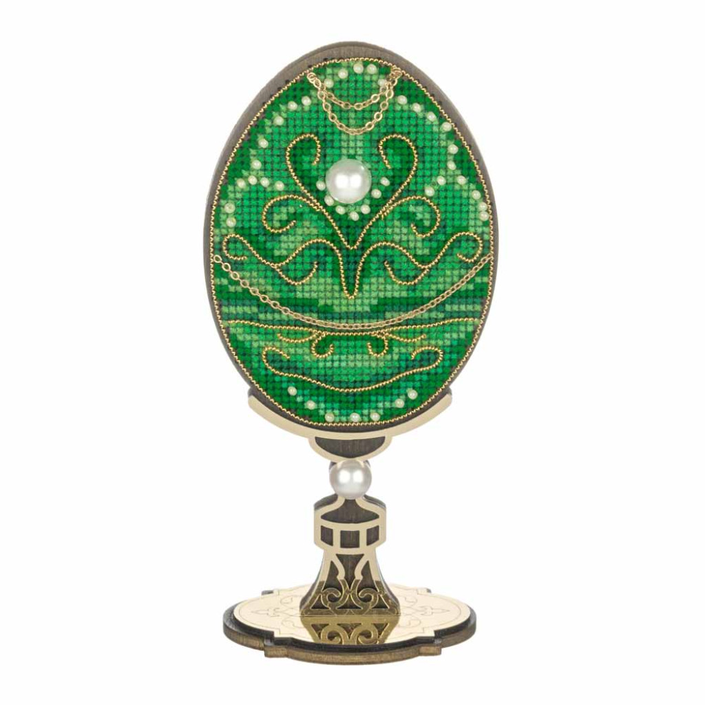 FLW-114 Wonderland Crafts Набір для вишивки хрестиком по дереву - Писанка. Смарагдовий візерунок, 7x14,5 см