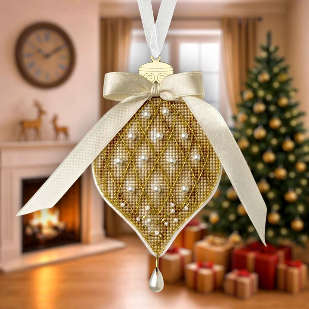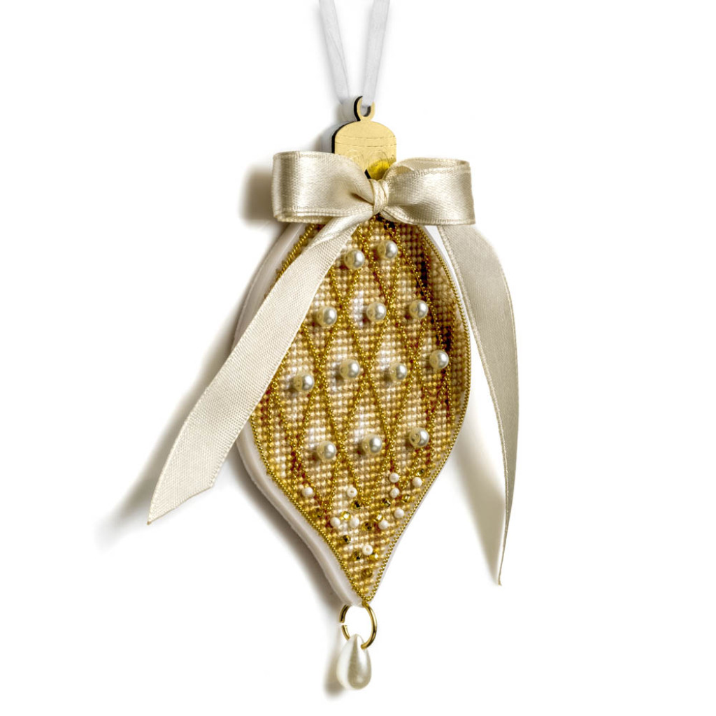 Дизайнери компанії розробили серію у теплих бежево-золотих тонах із перлинними акцентами, вишуканими бантами та декоративною фурнітурою. Такі прикраси однаково мають гарний вигляд і на класичній зеленій ялинці, і на сучасних варіантах у білих чи пастельних відтінках, а також у новорічних композиціях для фотозон. Це саме той випадок, коли вишита прикраса має вигляд вишуканого дизайнерського декору.
