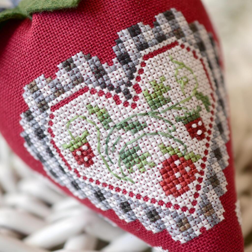 Х-381 Тела Артіс Набір для вишивки рахунковим хрестиком - Полуничка і клітинка дозволяє створити об’ємну декоративну підвіску у формі полунички. Вишита вставка з дрібними деталями гарно виглядає на рівномірці Zweigart Murano 32 ct, а завершений виріб доповнюється фетром та стрічкою в клітинку для акуратного оформлення. У дизайні використовується муліне DMC, зокрема секційного ручного фарбування Тела Артіс, а також передбачені французькі вузлики для виразних акцентів. Кольорова символьна схема формату A4 зручна для роботи, а QR-код дає можливість завантажити електронний файл.