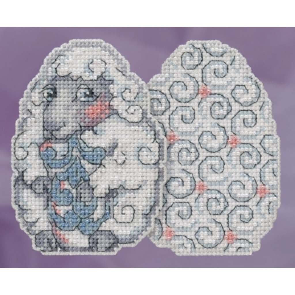 JS181815 Mill Hill Набір для вишивки рахунковим хрестиком + бісером - Іграшка Овечка Sheep Egg 9x7 см, перфорований папір