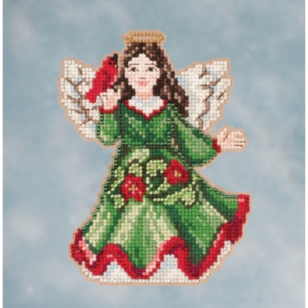 JS201615 Mill Hill Набір для вишивки рахунковим хрестиком + бісером - Іграшка Ангел з кардиналом Angel with Cardinal 9x13 см, перфорований папір