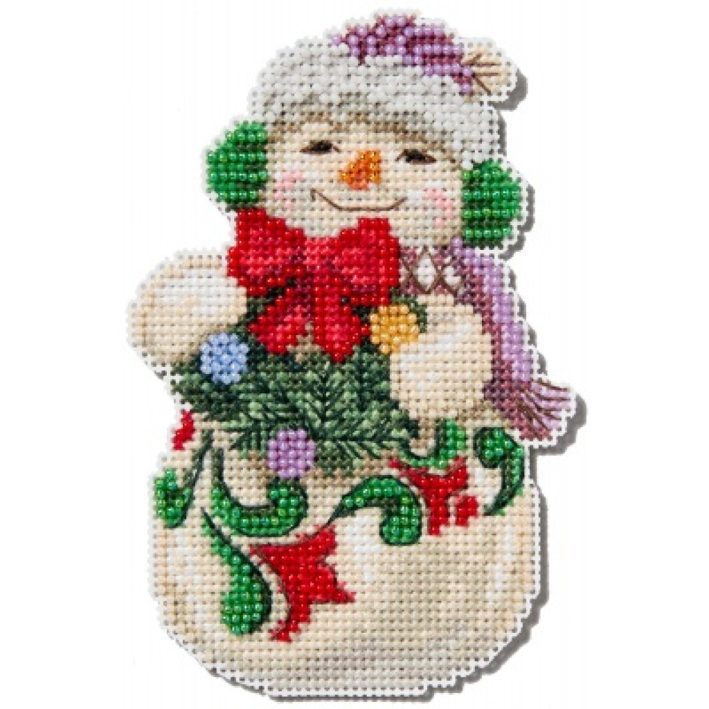 JS202412 Mill Hill Набір для вишивки рахунковим хрестиком + бісером - Іграшка Гном з наушниками Snowman with Earmuffs 8x13 см, перфорований папір