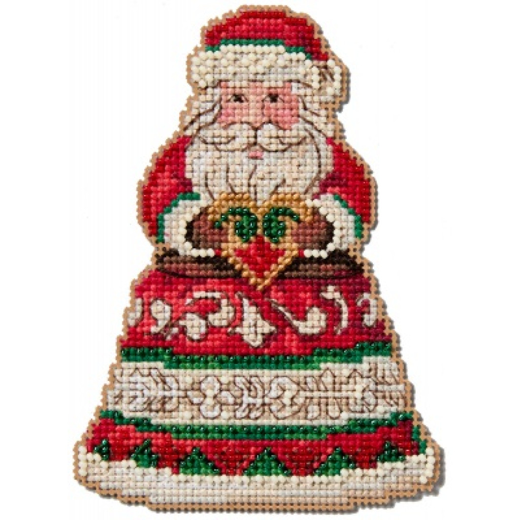 JS202414 Mill Hill Набір для вишивки рахунковим хрестиком + бісером - Іграшка Санта із серцем Santa Holding Heart 9x13 см, перфорований папір