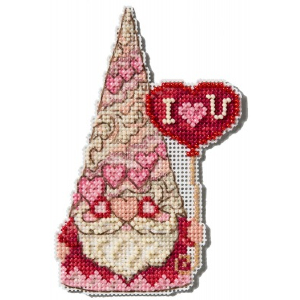 JS202511 Mill Hill Набір для вишивки рахунковим хрестиком + бісером - Іграшка Гном із серцем Gnome with Heart 8x12,5 см, перфорований папір
