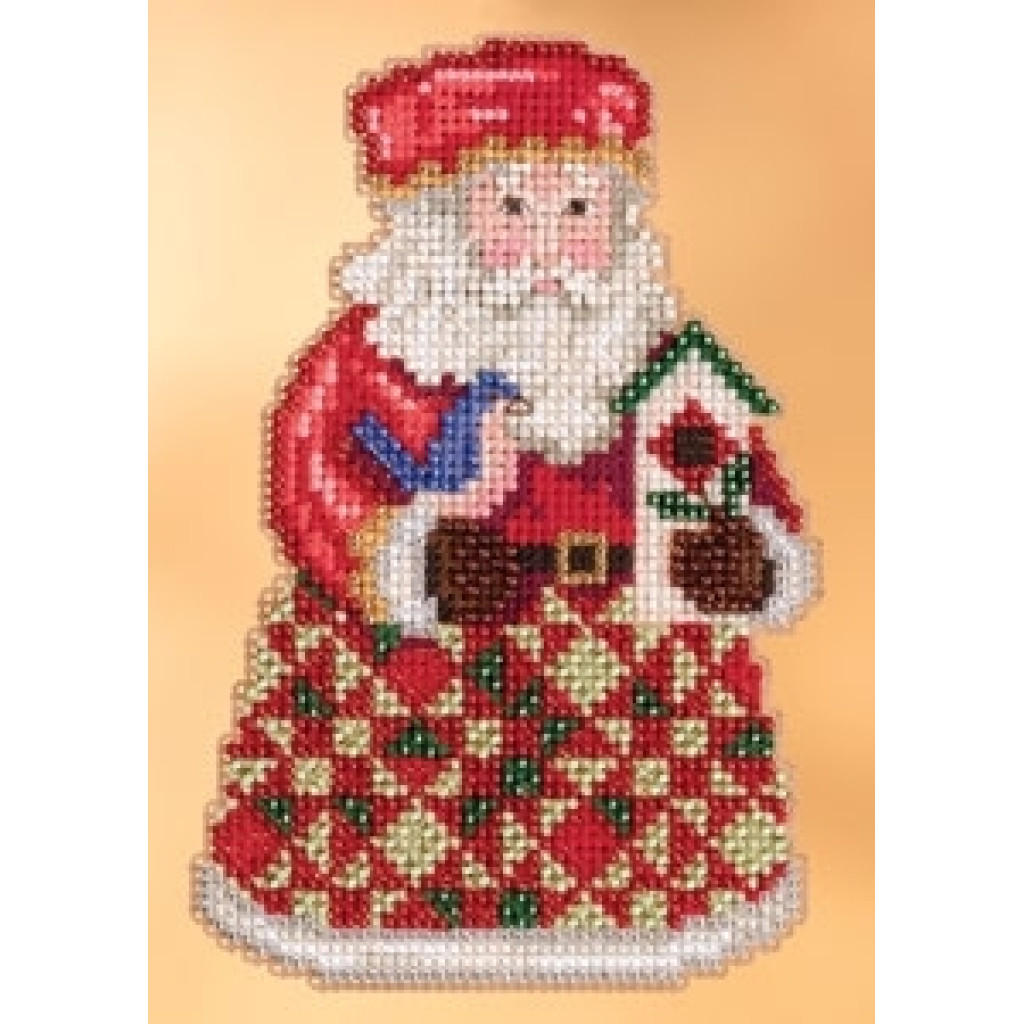 JS203104 Mill Hill Набір для вишивки рахунковим хрестиком + бісером - Іграшка Затишний Різдвний Санта Cozy Christmas Santa 9x13 см, перфорований папір