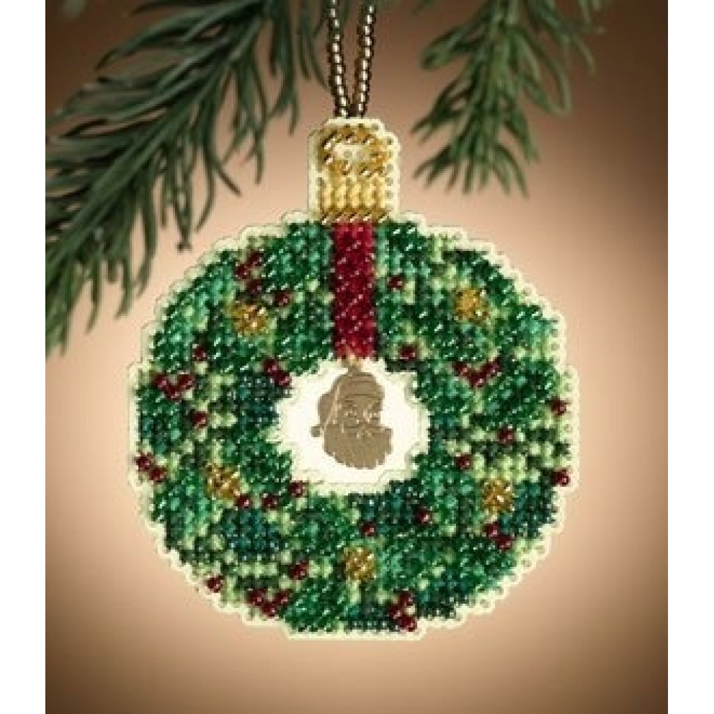 MH161305 Mill Hill Набір для вишивки рахунковим хрестиком + бісером - Іграшка Смарагдовий вінок Emerald Wreath 6x7 см, перфорований папір