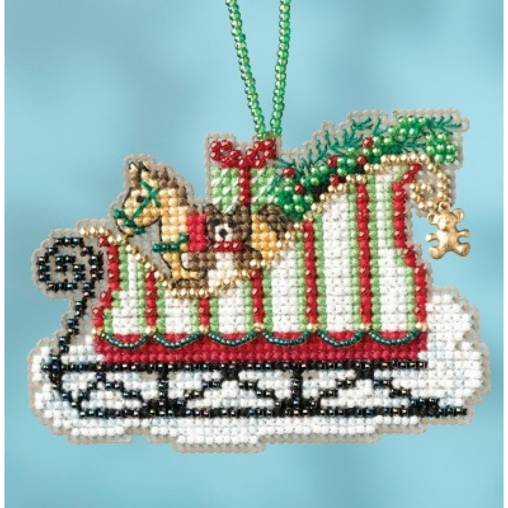 MH161733 Mill Hill Набір для вишивки рахунковим хрестиком + бісером - Іграшка Іграшкові санчата Toyland Sleigh 6x7 см, перфорований папір