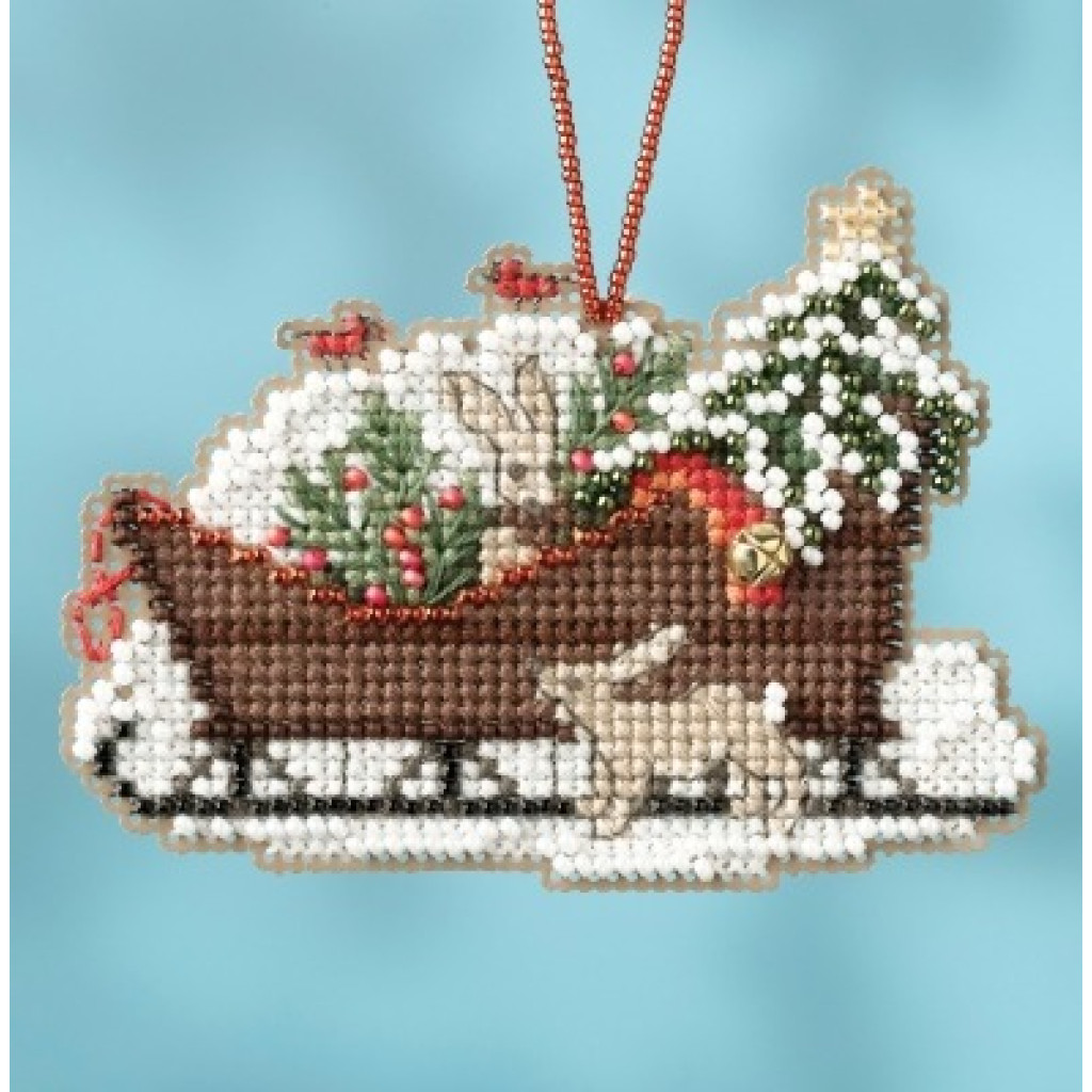 MH161735 Mill Hill Набір для вишивки рахунковим хрестиком + бісером - Іграшка Дерев'яні санчата Woodland Sleigh 6x7 см, перфорований папір