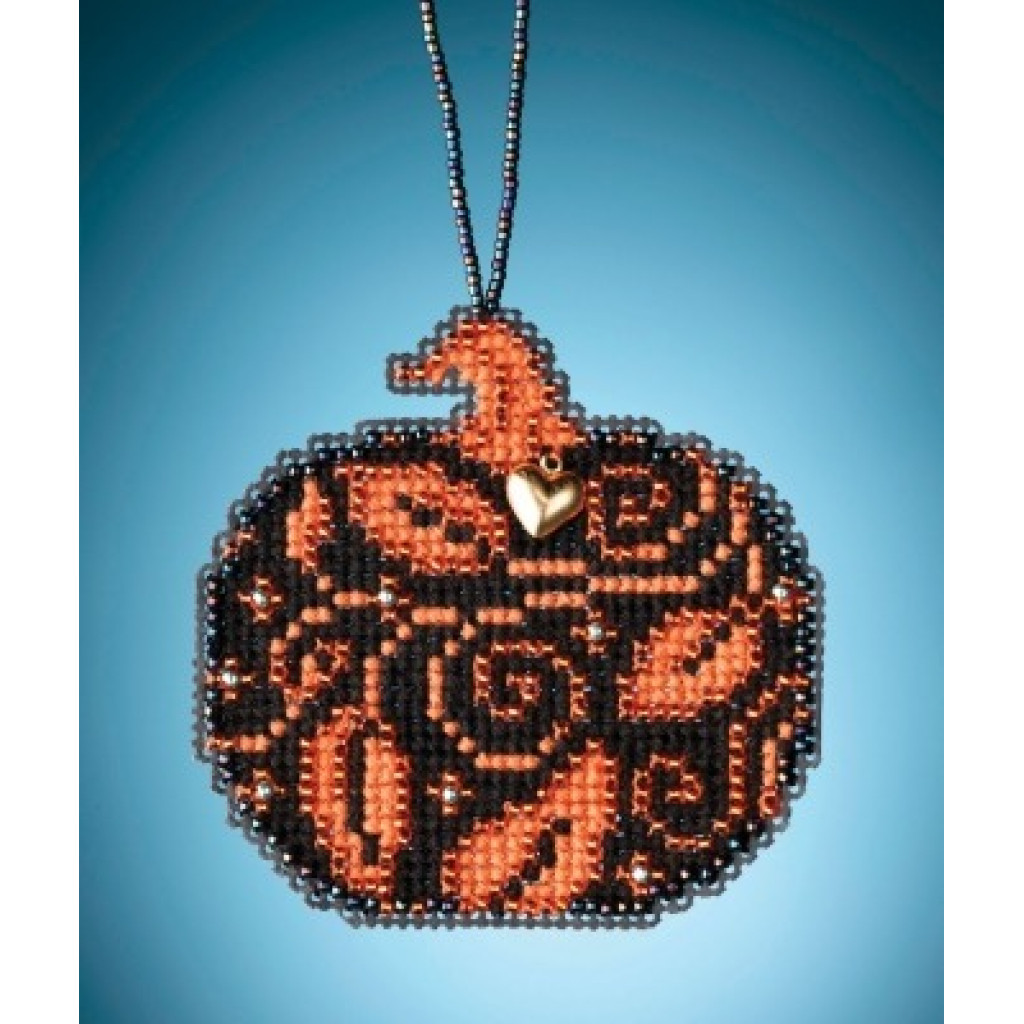 MH162023 Mill Hill Набір для вишивки рахунковим хрестиком + бісером - Іграшка Сяючий гарбуз Glowing Pumpkin 6x7 см, перфорований папір