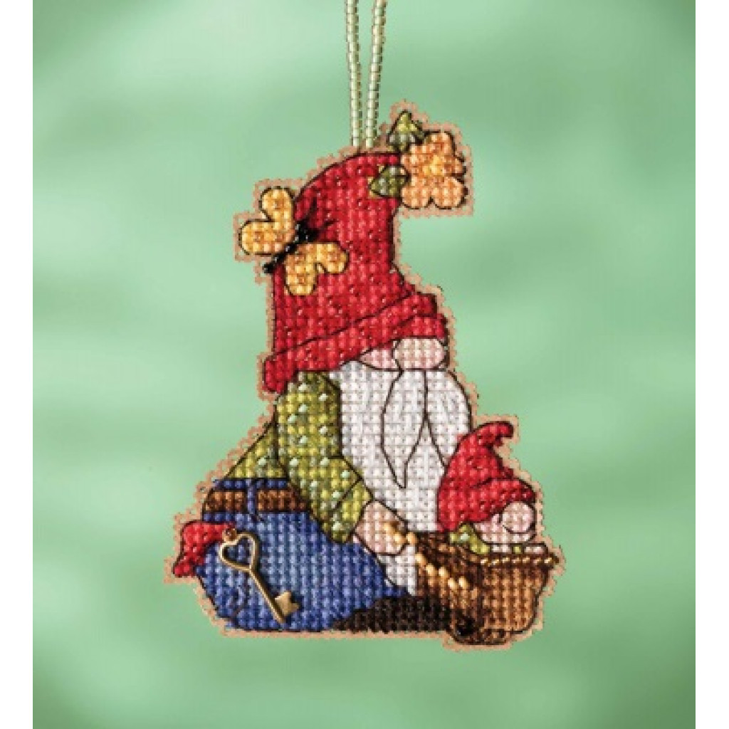 MH162212 Mill Hill Набір для вишивки рахунковим хрестиком + бісером - Іграшка Гном з тачкою Wheelbarrow Gnome 6x9 см, перфорований папір