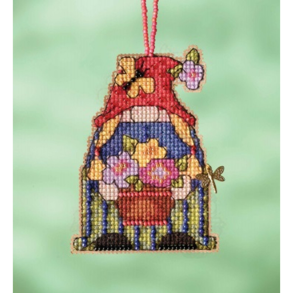MH162213 Mill Hill Набір для вишивки рахунковим хрестиком + бісером - Іграшка Садова дівчинка-гном Garden Girl Gnome 6x9 см, перфорований папір