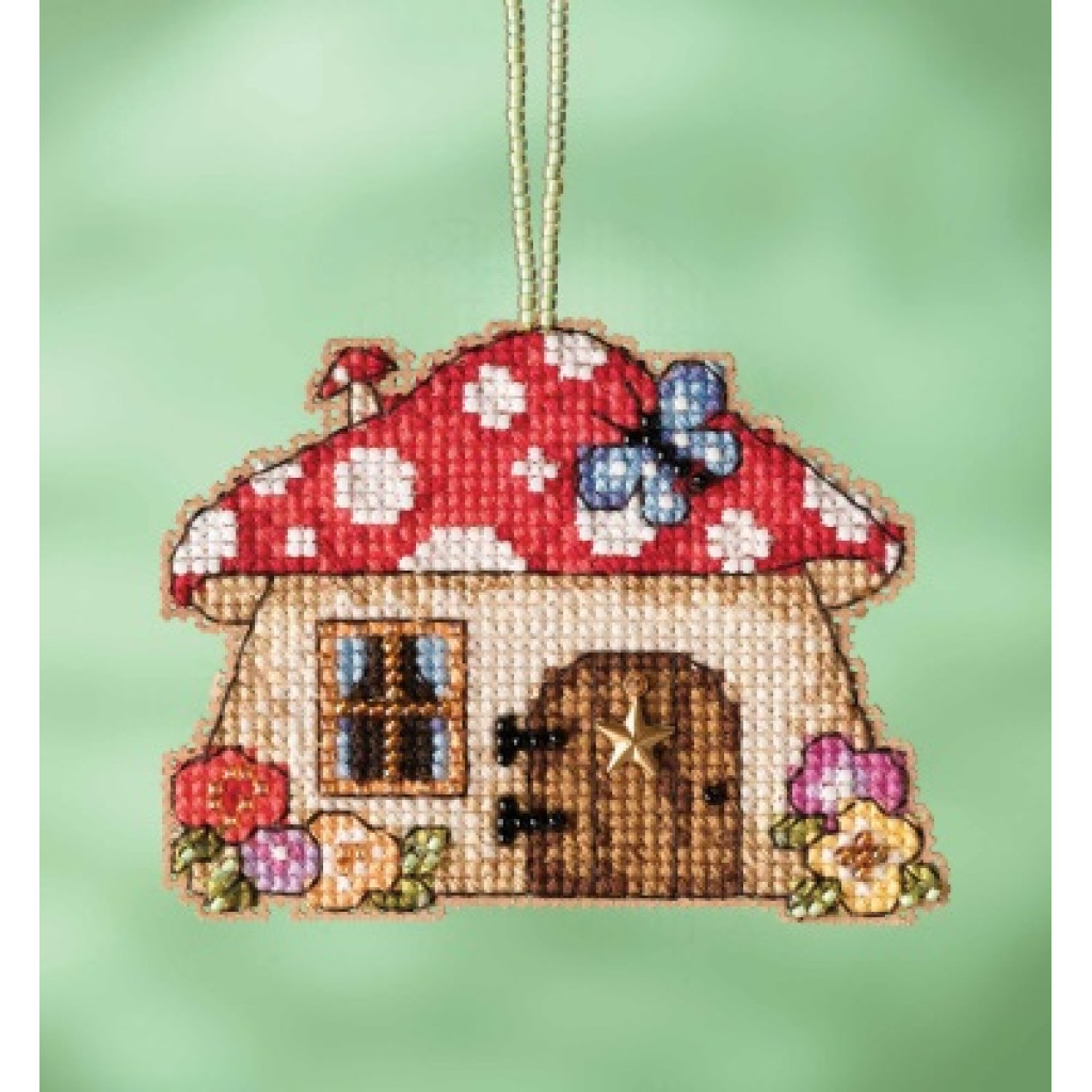 MH162215 Mill Hill Набір для вишивки рахунковим хрестиком + бісером - Іграшка Грибний будиночок Mushroom House 6x9 см, перфорований папір