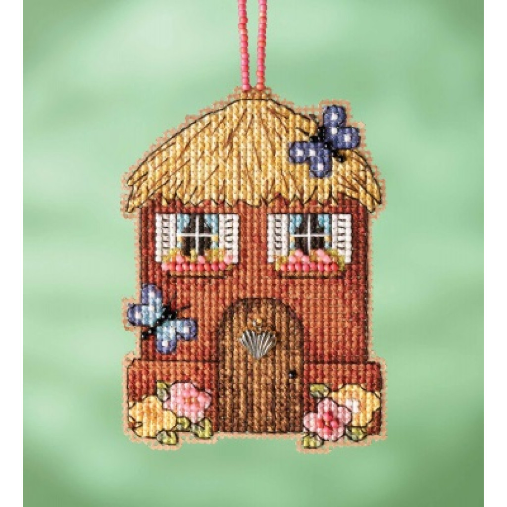 Набір для вишивки Солом'яний будиночок Straw House — декоративний орнамент на перфорованому папері. Поєднання хрестика, скляного бісеру та декоративних підвісок (charms) надає виробу рельєфу й святкового блиску. У комплекті є шнурок-петля з бісеру для зручного підвішування.