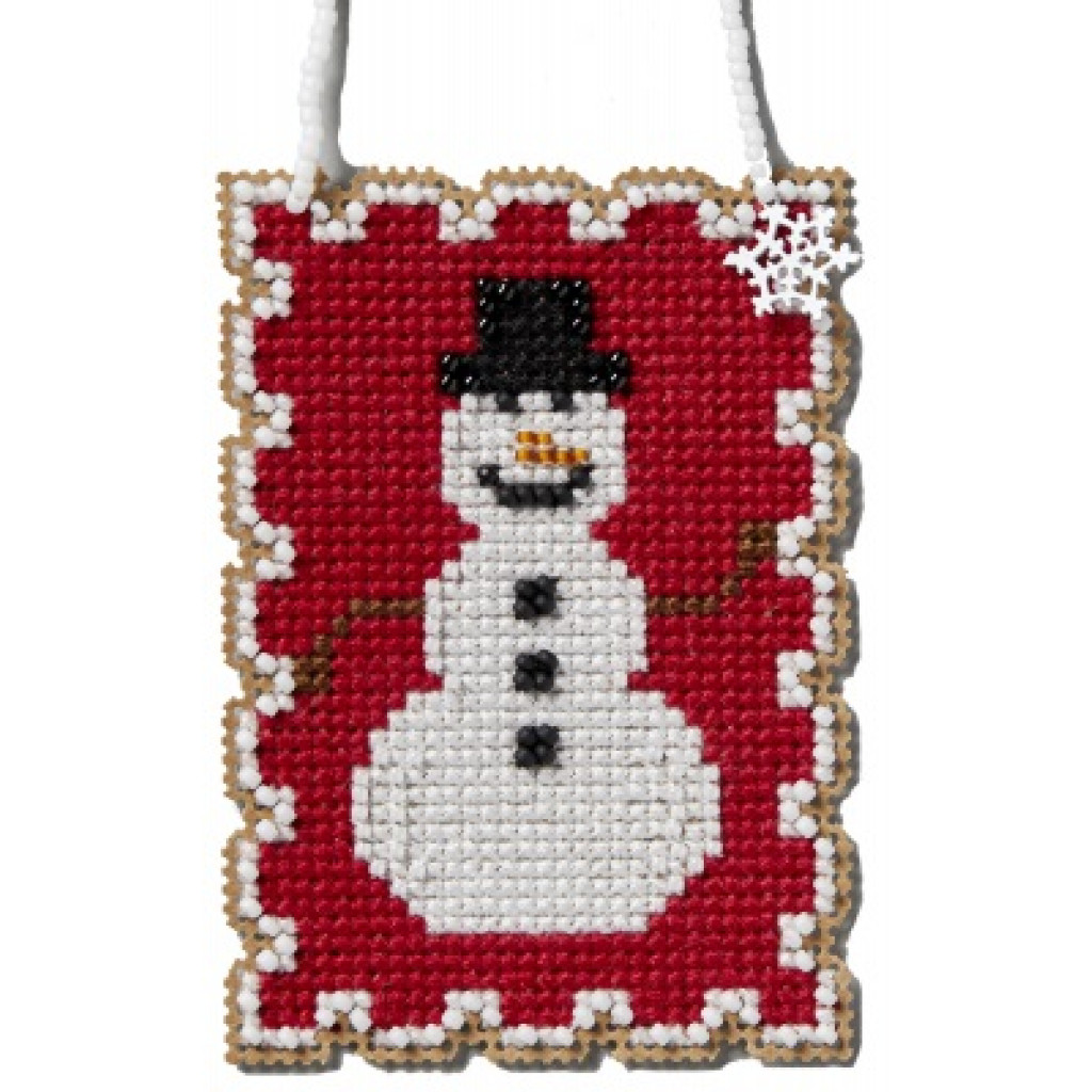 MH162435 Mill Hill Набір для вишивки рахунковим хрестиком + бісером - Іграшка Сніговик Snowman 6x8 см, перфорований папір