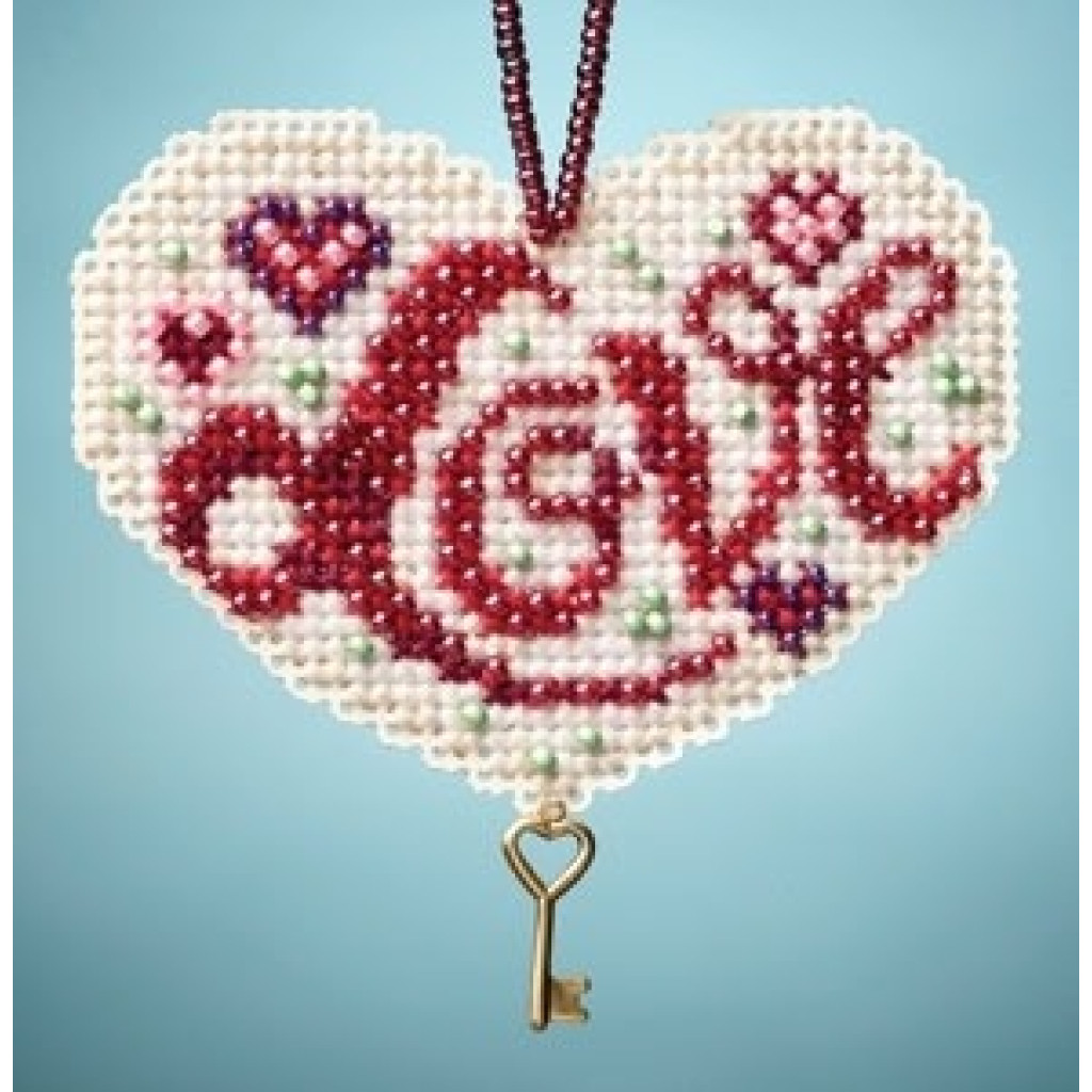 MH163106 Mill Hill Набір для вишивки рахунковим хрестиком + бісером - Іграшка Люблю Love 5x7 см, перфорований папір