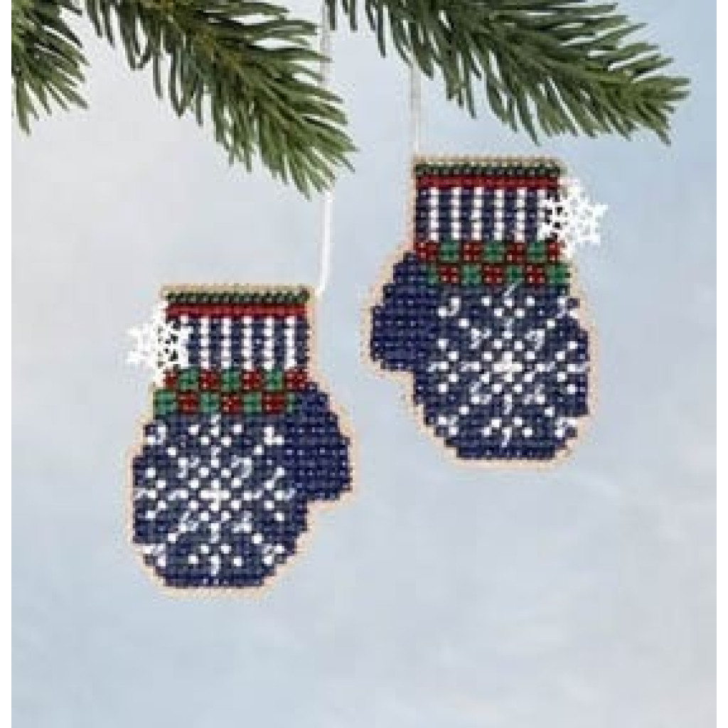 MH166302 Mill Hill Набір для вишивки рахунковим хрестиком + бісером - Іграшка Рукавиці Санти Santa's Mittens 4x5 см, перфорований папір
