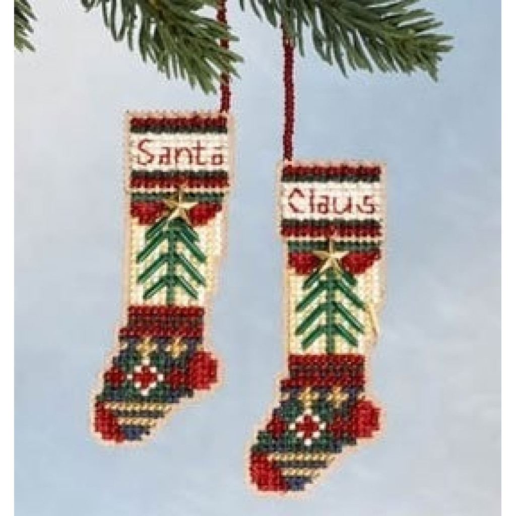 MH166304 Mill Hill Набір для вишивки рахунковим хрестиком + бісером - Іграшка Чулки Санти Santa's Stockings 5x8 см, перфорований папір