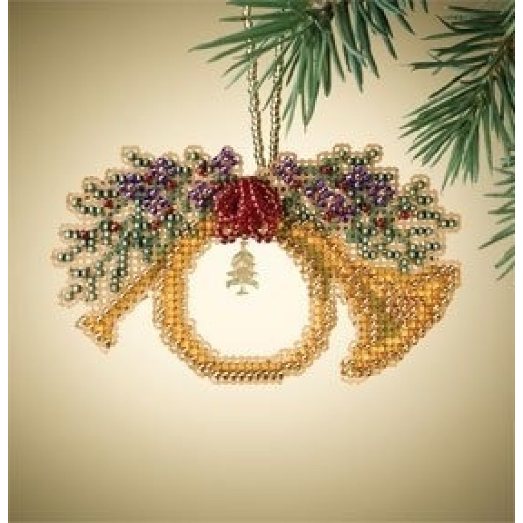 MH167302 Mill Hill Набір для вишивки рахунковим хрестиком + бісером - Іграшка Валторна French Horn 6x7 см, перфорований папір