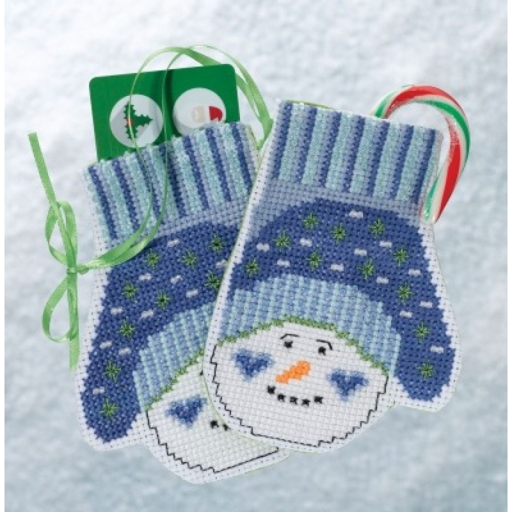 MH191831 Mill Hill Набір для вишивки рахунковим хрестиком + бісером - Іграшка Рукавички Сніговик Snowman Mittens 10x13 см, перфорований папір