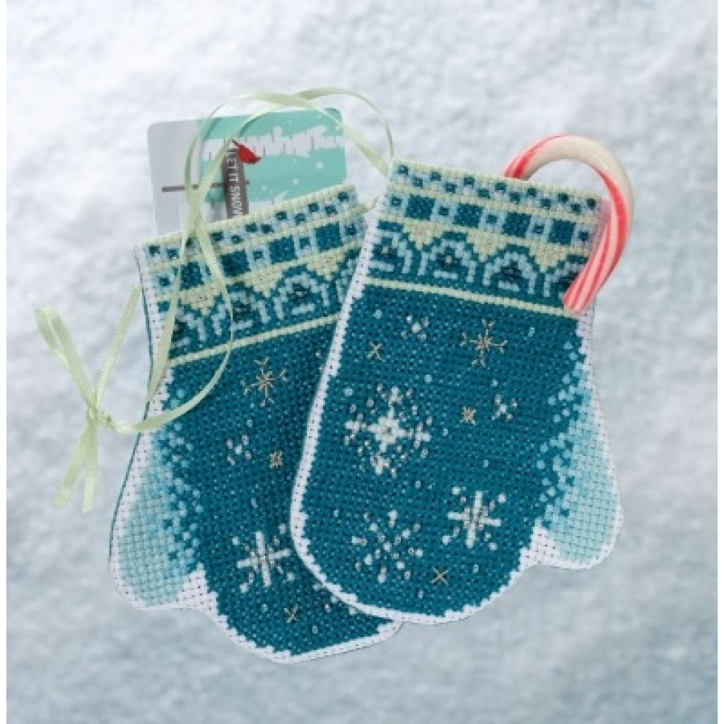 MH191832 Mill Hill Набір для вишивки рахунковим хрестиком + бісером - Іграшка Рукавички Сніжинки Snowflake Mittens 10x13 см, перфорований папір