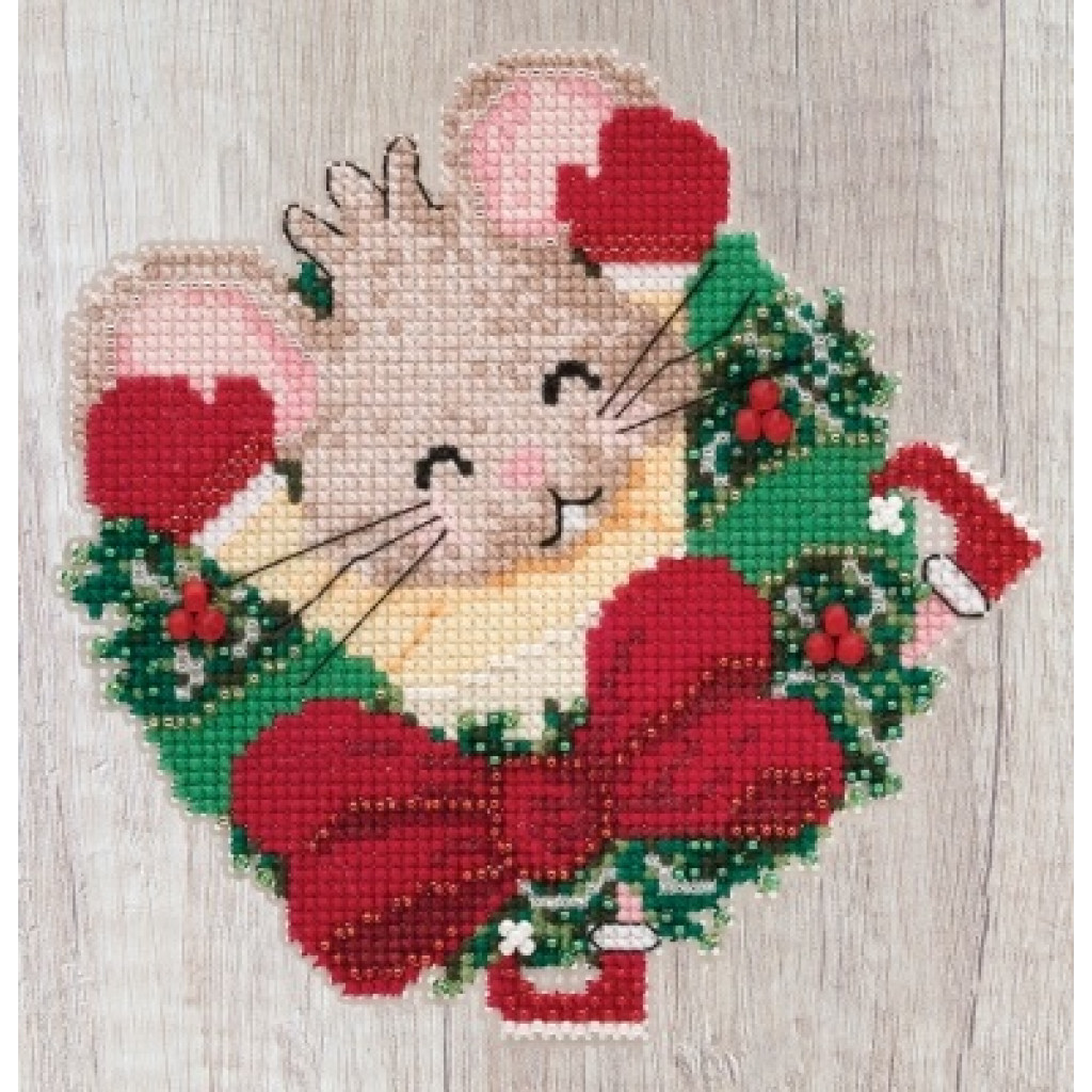 Набір для вишивки Мишеня Петсі Patsy Pine — декоративний орнамент на перфорованому папері. Поєднання хрестика, скляного бісеру та декоративних підвісок (charms) надає виробу рельєфу й святкового блиску. У комплекті є шнурок-петля з бісеру для зручного підвішування.