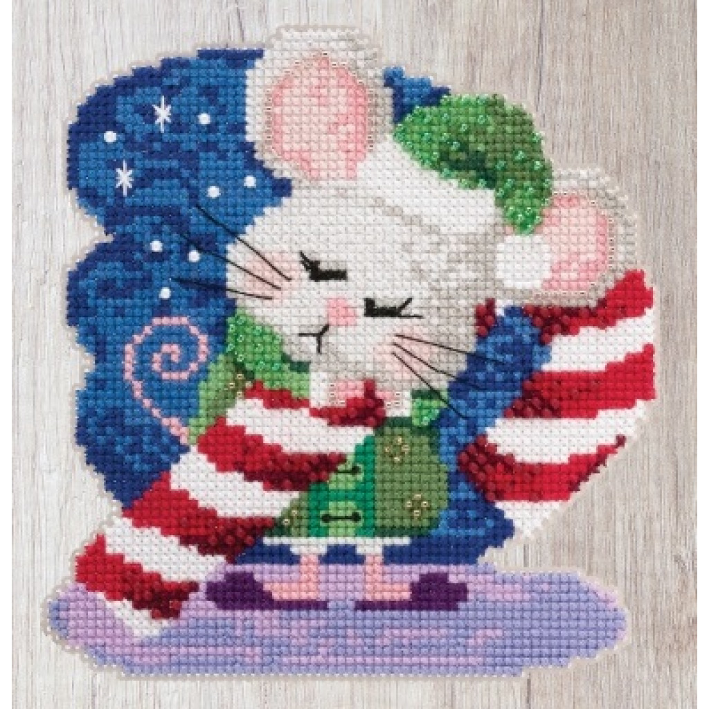 MH192013 Mill Hill Набір для вишивки рахунковим хрестиком + бісером - Іграшка Тростина Сінді Cindy Cane 12x13 см, перфорований папір