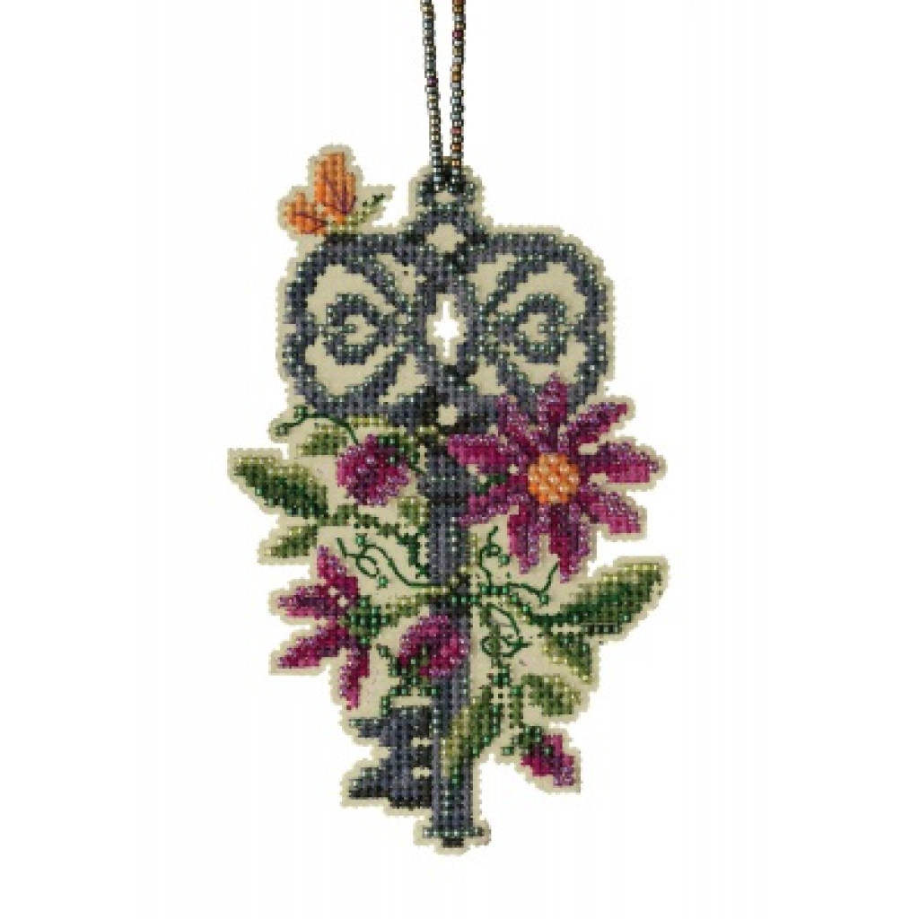 Набір для вишивки Весняний ключ Spring Key — декоративний орнамент на перфорованому папері. Поєднання хрестика, скляного бісеру та декоративних підвісок (charms) надає виробу рельєфу й святкового блиску. У комплекті є шнурок-петля з бісеру для зручного підвішування.