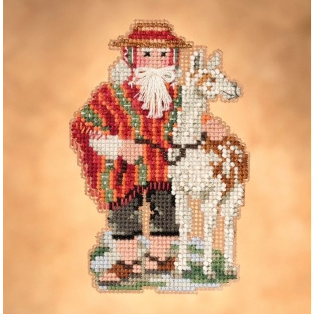 MH201932 Mill Hill Набір для вишивки рахунковим хрестиком + бісером - Іграшка Андес Санта Andes Santa 8x11 см, перфорований папір
