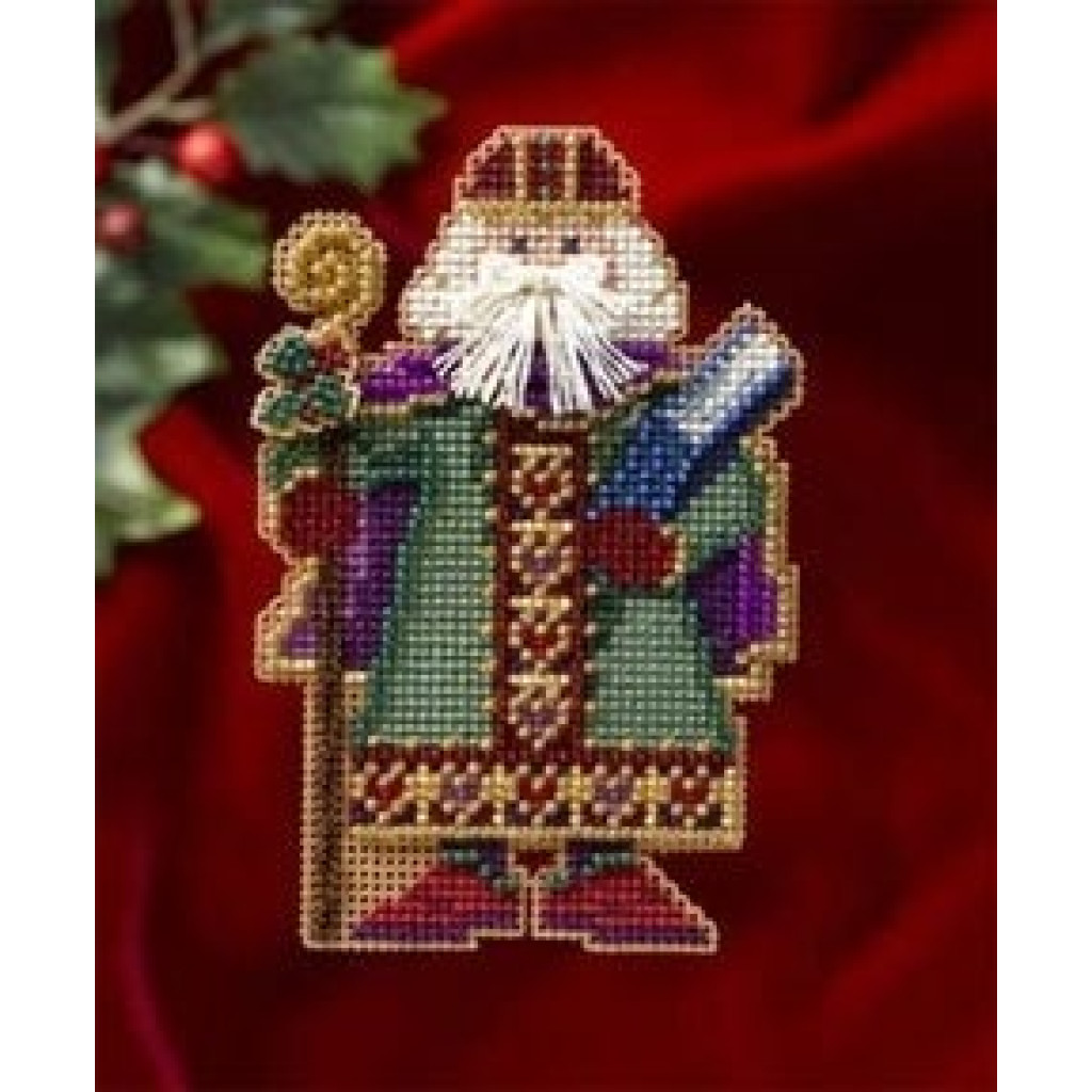 MH206303 Mill Hill Набір для вишивки рахунковим хрестиком + бісером - Іграшка Санта Саксонії Saxony Santa 8x11 см, перфорований папір