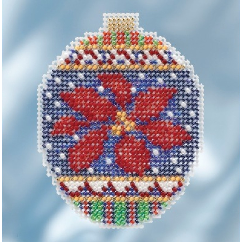 MH211814 Mill Hill Набір для вишивки рахунковим хрестиком + бісером - Іграшка Різдвяна пуансеттія Christmas Poinsettia 6x8 см, перфорований папір