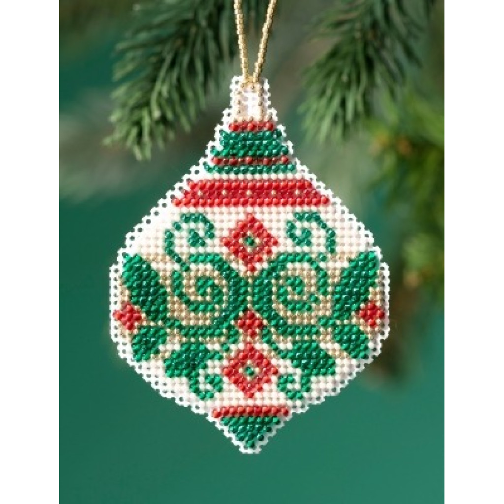 MH211911 Mill Hill Набір для вишивки рахунковим хрестиком + бісером - Іграшка Смарагдове цвітіння Emerald Flourish 6x8 см, перфорований папір