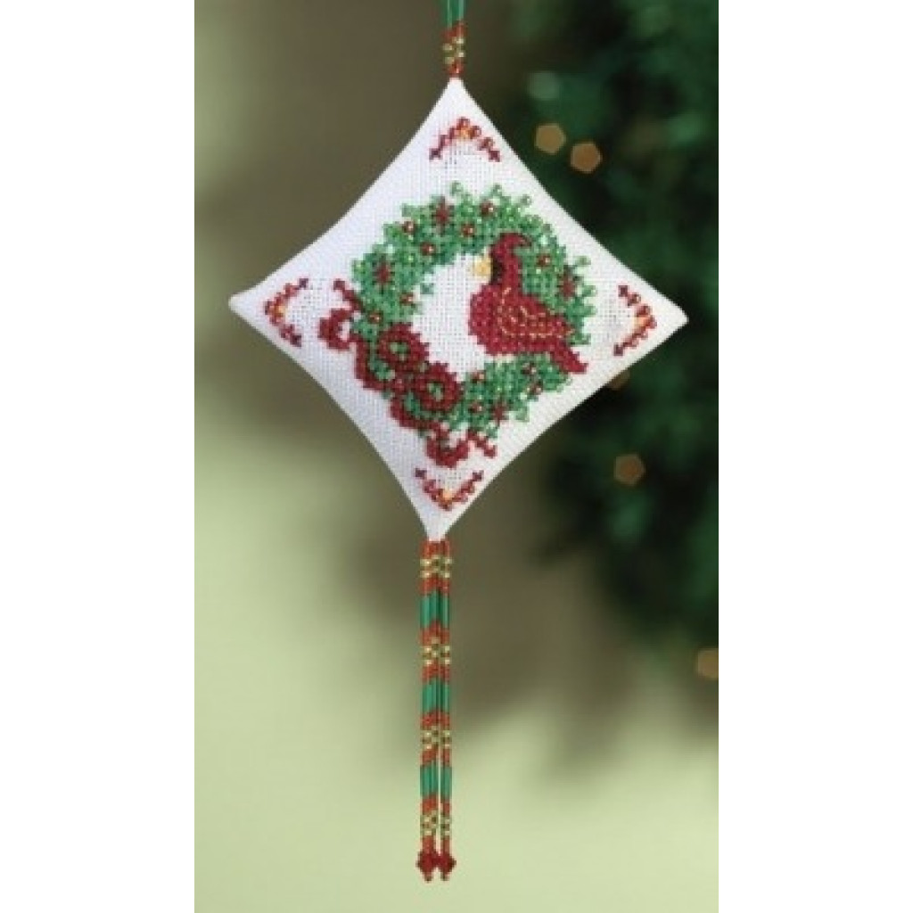 MH220303 Mill Hill Набір для вишивки рахунковим хрестиком + бісером - Іграшка Кардинал Cardinal 8x14 см, перфорований папір