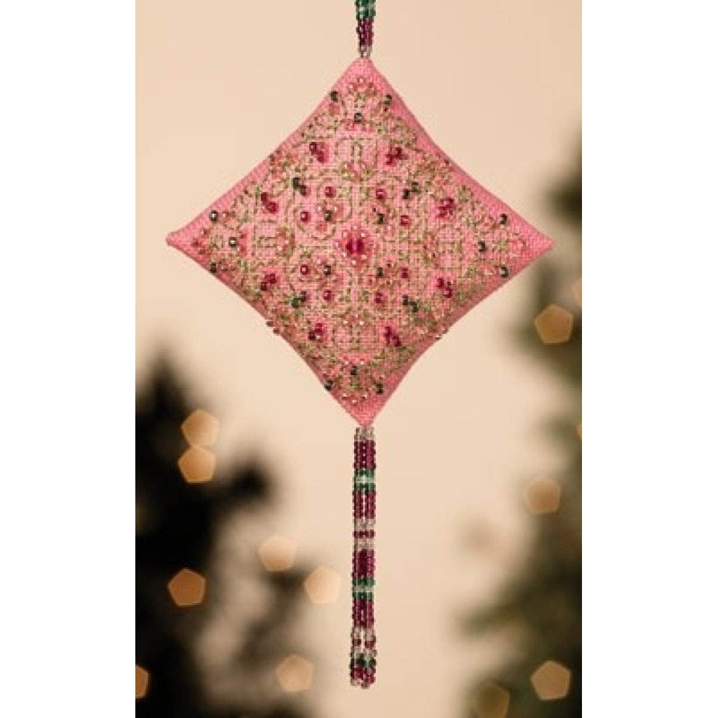 Набір для вишивки Рожеве шампанське Pink Champagne Mill Hill поєднує рахунковий хрестик і скляний бісер, завдяки чому іграшка має охайний рельєф і святковий блиск. Перфорований папір 14 ct зручний у роботі, стібки лягають рівно, а повна комплектація дозволяє відразу розпочати вишивання.