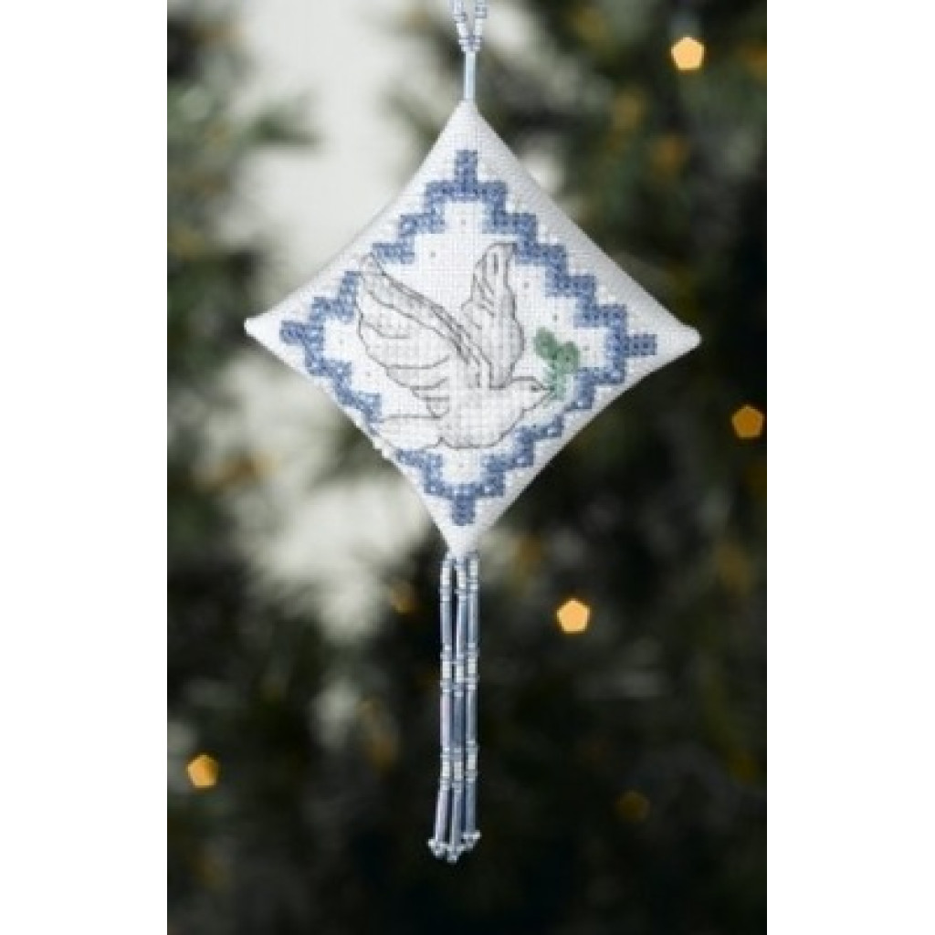 MH228301 Mill Hill Набір для вишивки рахунковим хрестиком + бісером - Підвіс Голубонька Dove 14x8 см, рівномірка 28 ct