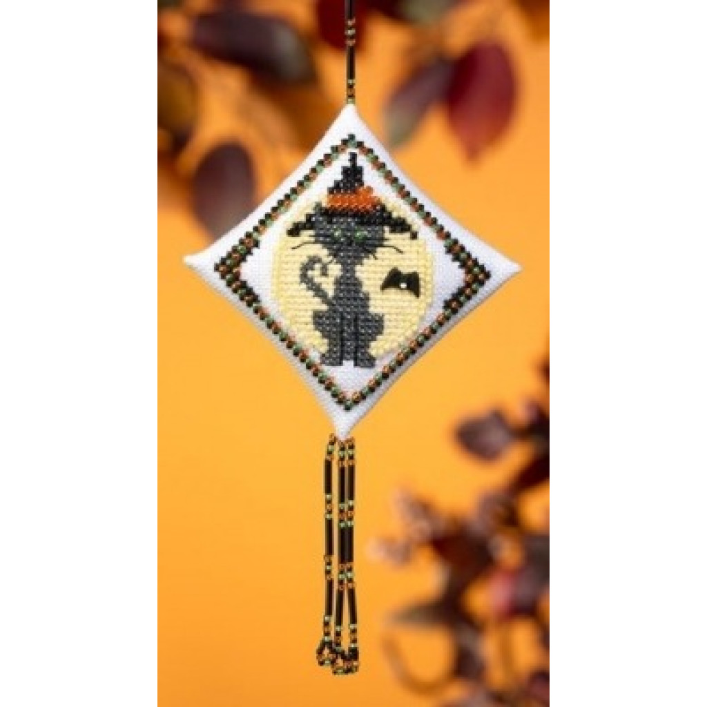 MH229204 Mill Hill Набір для вишивки рахунковим хрестиком + бісером - Підвіс Кішка відьма Kitty Witch 14x8 см, рівномірка 28 ct