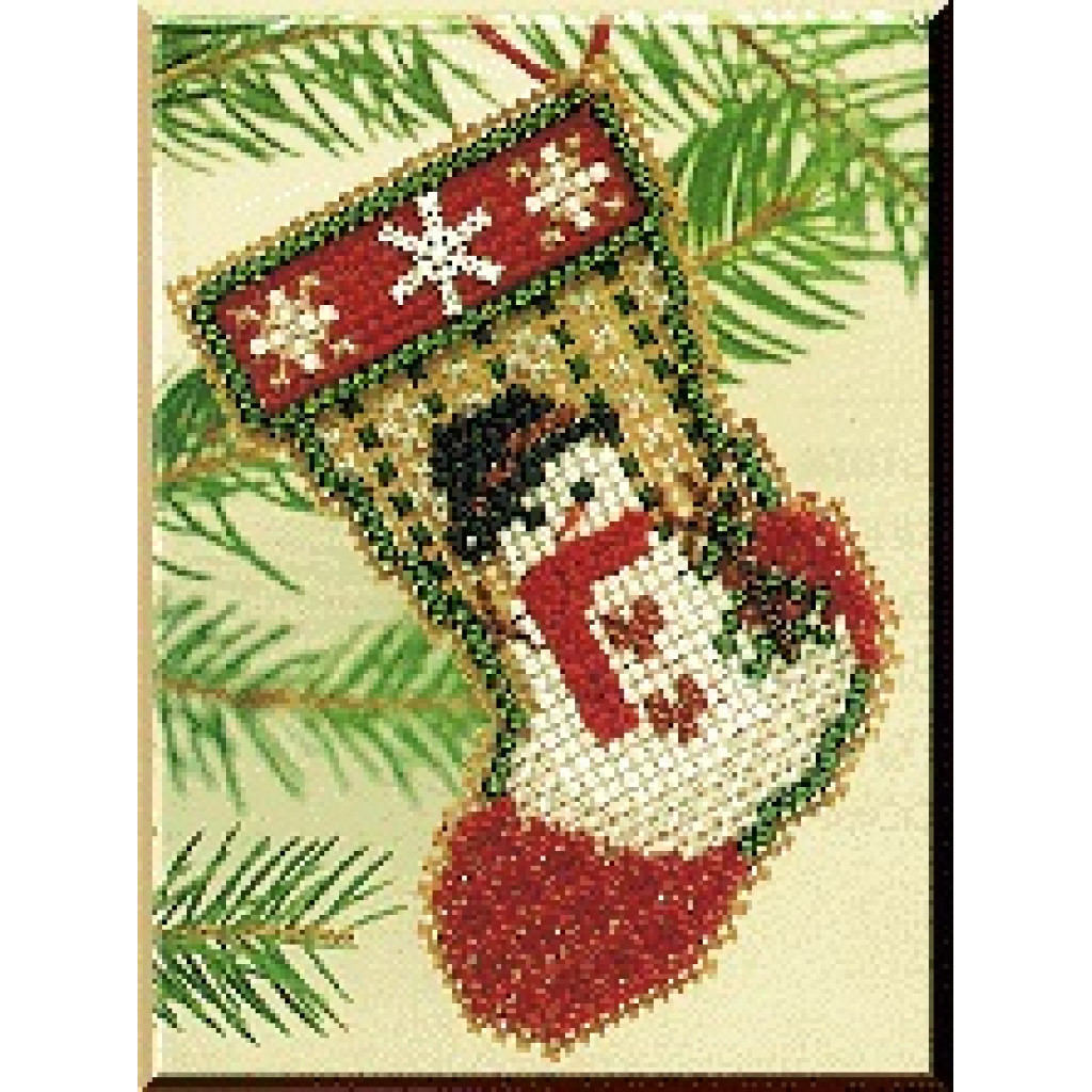 MHCS4 Mill Hill Набір для вишивки рахунковим хрестиком + бісером - Іграшка Панчоха Snowman Stocking 6x10 см, перфорований папір