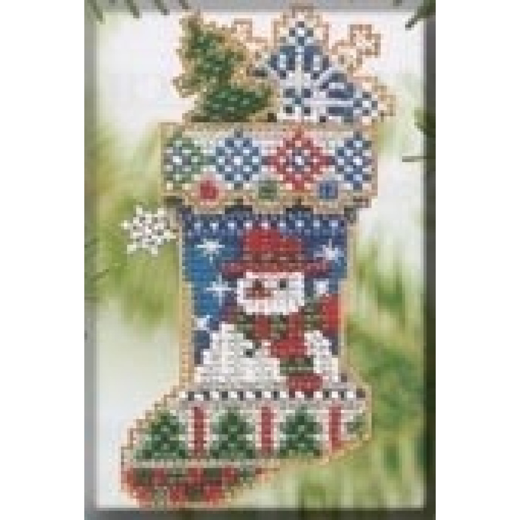 MHCS45 Mill Hill Набір для вишивки рахунковим хрестиком + бісером - Іграшка Панчоха Mr. Snowflake Stocking 6x10 см, перфорований папір