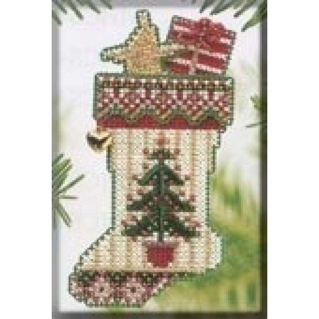 MHCS48 Mill Hill Набір для вишивки рахунковим хрестиком + бісером - Іграшка Панчоха Evergreen Stocking 6x10 см, перфорований папір