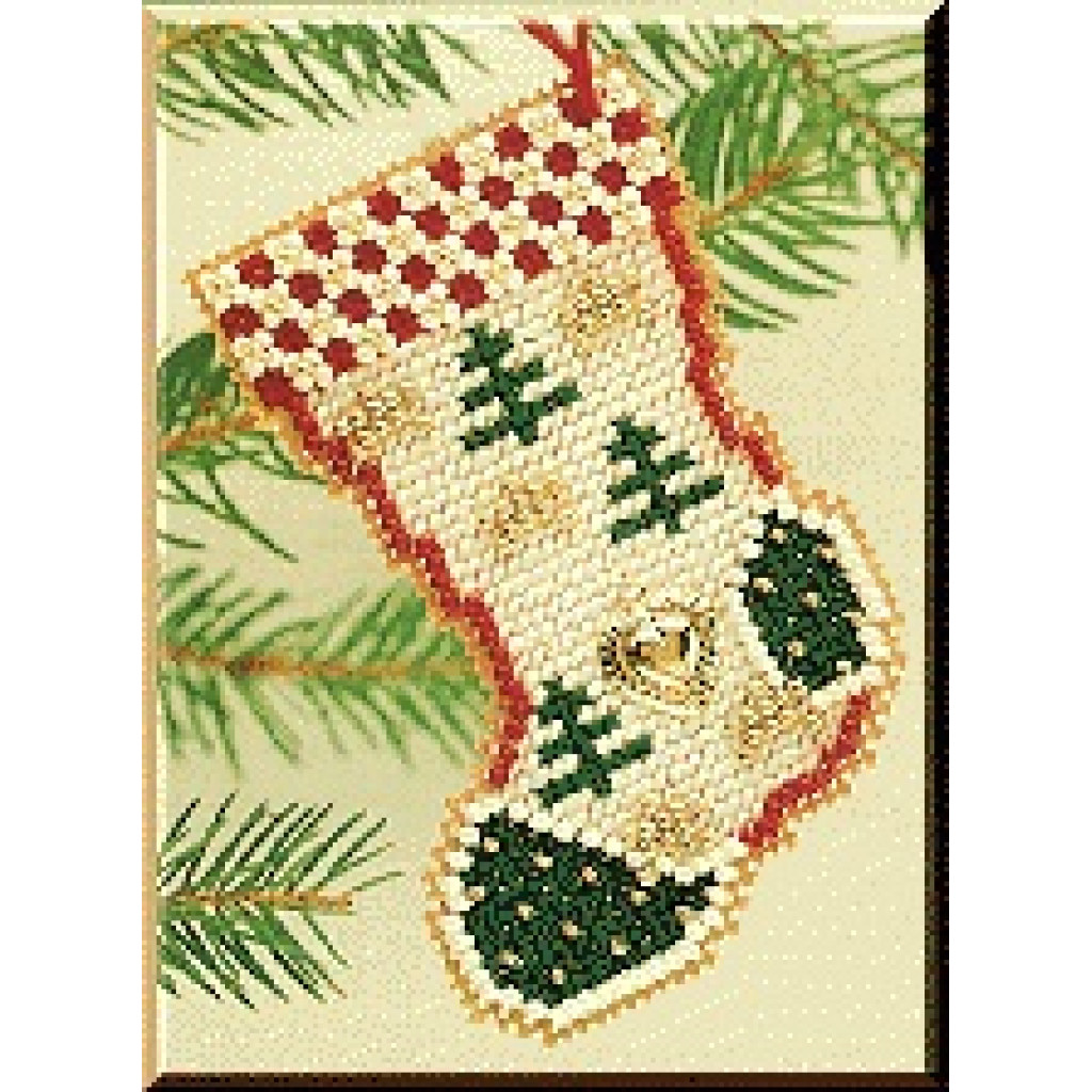 MHCS5 Mill Hill Набір для вишивки рахунковим хрестиком + бісером - Іграшка Панчоха Дерево Tree Stocking 6x10 см, перфорований папір