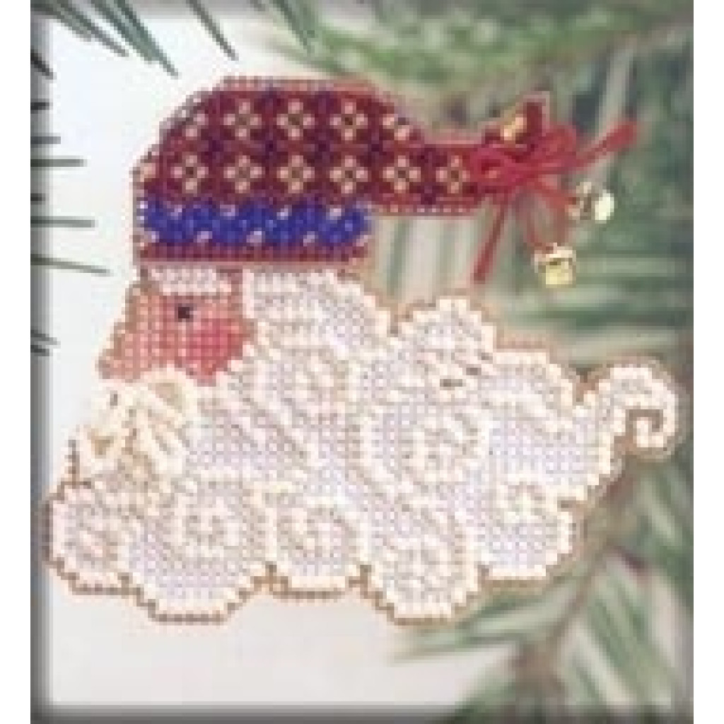 MHCSF32 Mill Hill Набір для вишивки рахунковим хрестиком + бісером - Іграшка Дзвоник Санти Santa Jingles 7x9 см, перфорований папір
