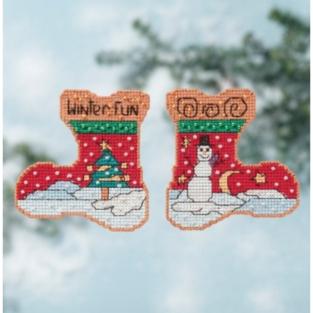 ST141611 Mill Hill Набір для вишивки рахунковим хрестиком + бісером - Іграшка Зимові веселощі Winter Fun Stocking 7x7 см, перфорований папір