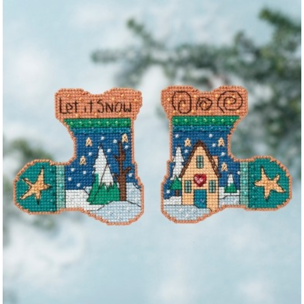 ST141615 Mill Hill Набір для вишивки рахунковим хрестиком + бісером - Іграшка Нехай сніжить Let it Snow 7x7 см, перфорований папір
