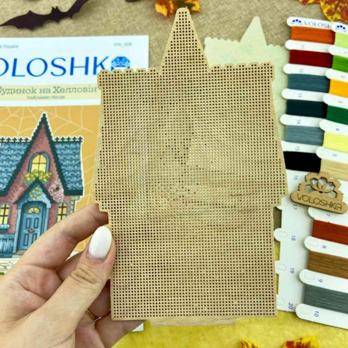 VW_008 Voloshka Набір для вишивки рахунковим хрестиком по дереву - Іграшка Будинок на Хелловін 12x18 см