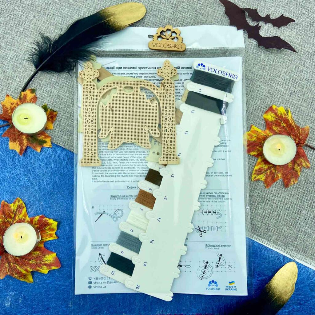 VW_009 Voloshka Набір для вишивки рахунковим хрестиком по дереву - Іграшка Кажан Хелловін 12,5x13,6 см