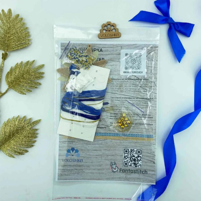 YuMI_003W Voloshka Набір для вишивки хрестом та бісером по дереву YuMI - Іграшка Різдв'яна зірка 12x12 см
