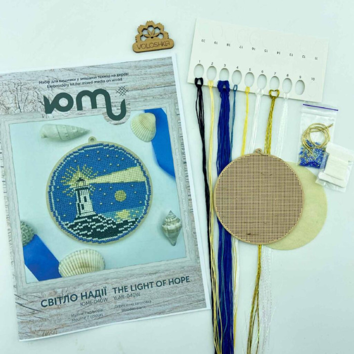 YUMI_040_WF Voloshka Набір для вишивки хрестом та бісером по дереву YuMI - Іграшка Світло надії 10,6х10,6 см
