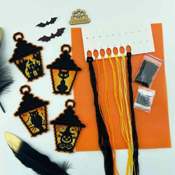 YuMI_054 Voloshka Набір для вишивки хрестом та бісером YuMI - Фігурки Ліхтарики 8,5x11,8x4 см, Aida 14 ct пластикова (4 шт)